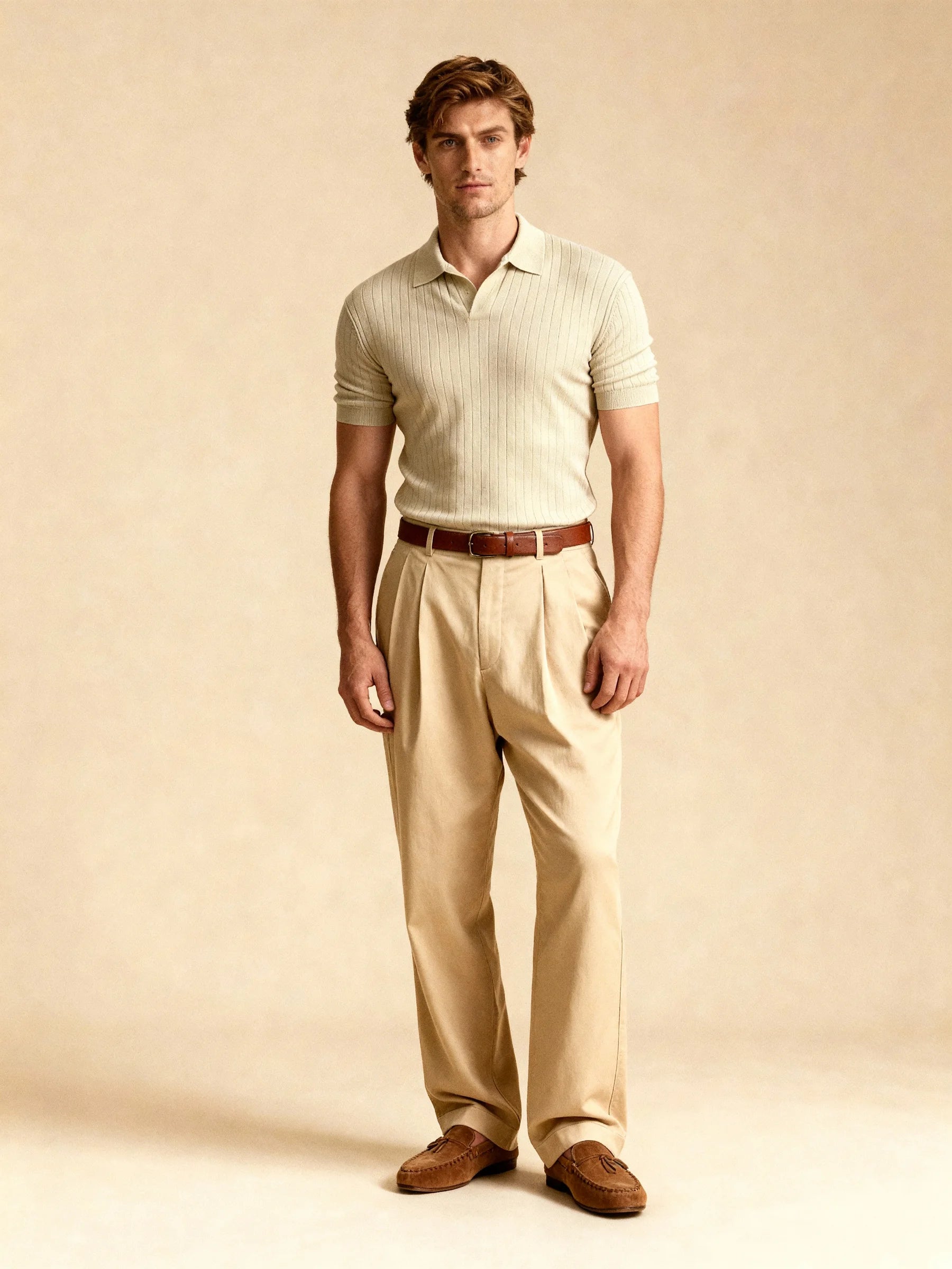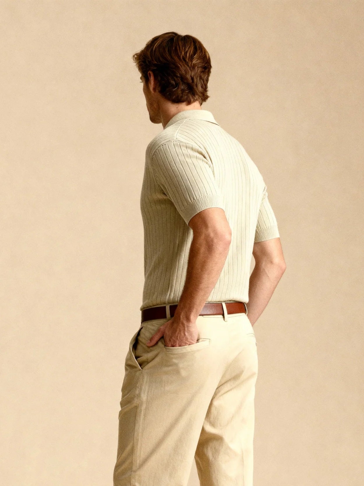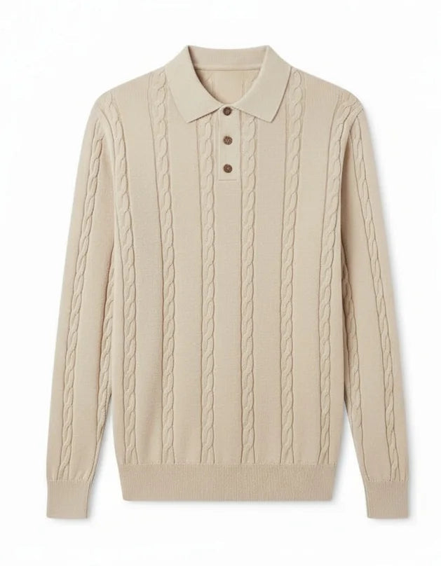 Polo torsadé boutonné manches longues - Beige