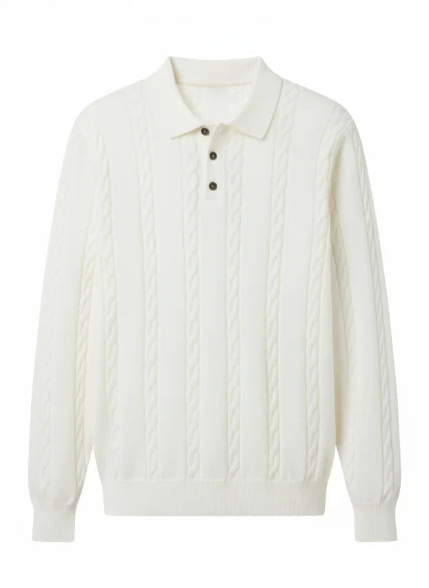 Polo torsadé boutonné manches longues - Blanc