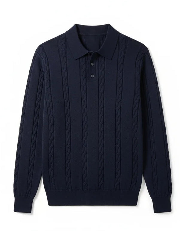 Polo torsadé boutonné manches longues - Marine