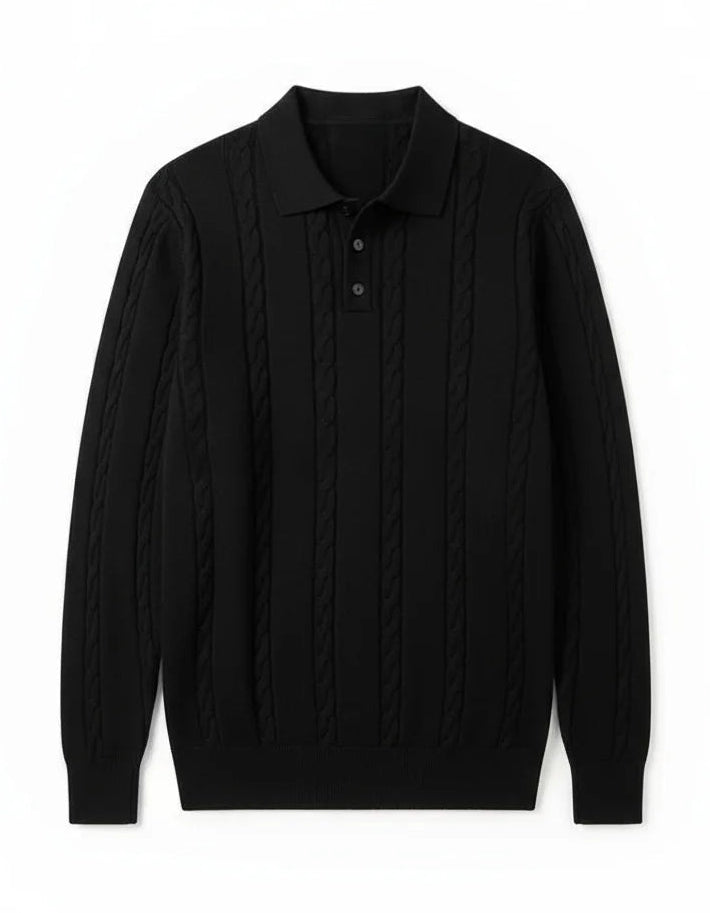 Polo torsadé boutonné manches longues - Noir