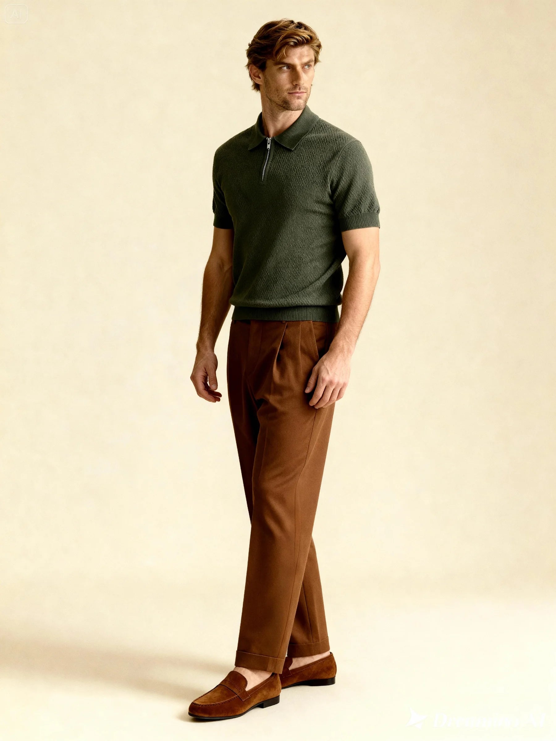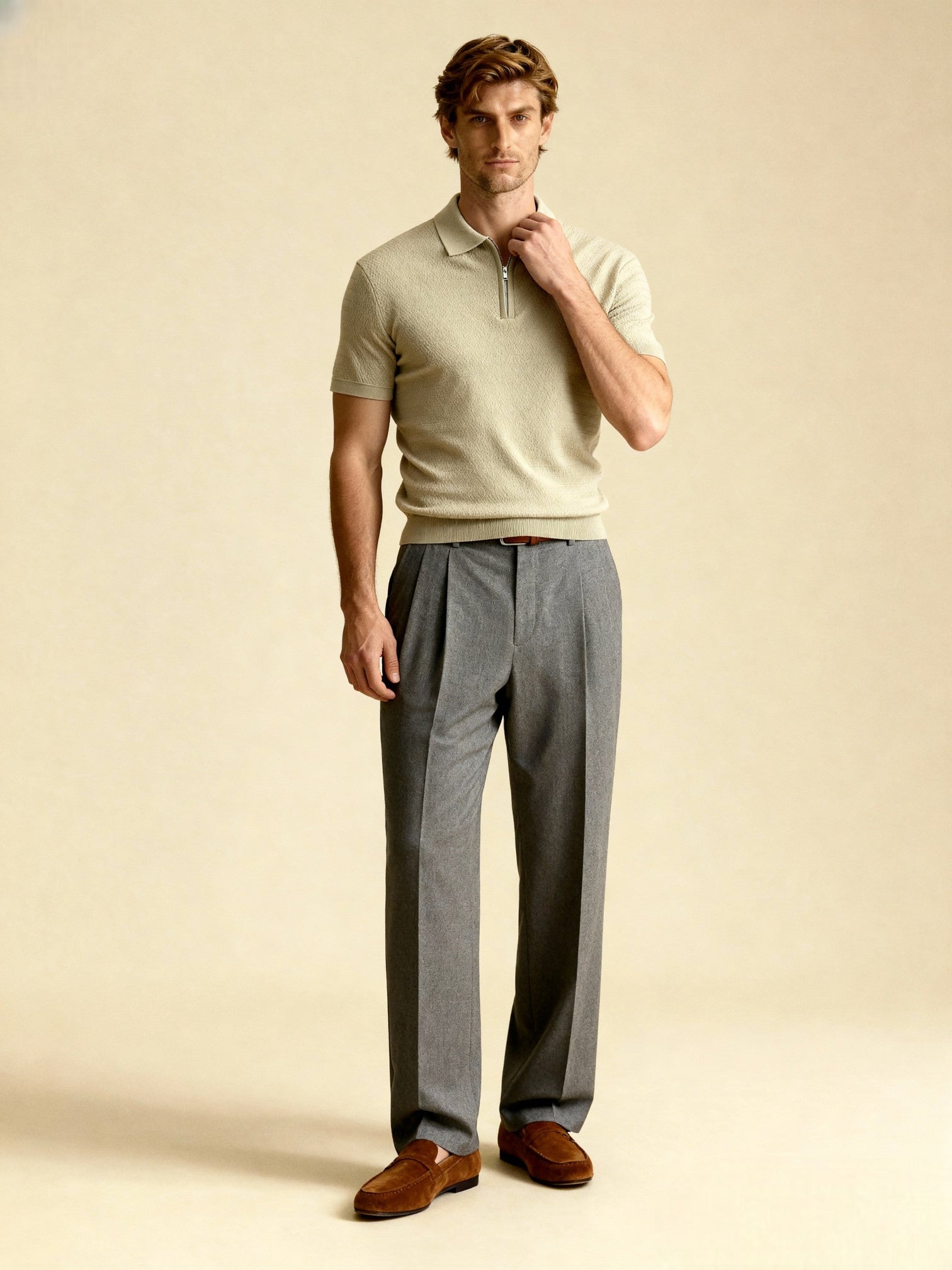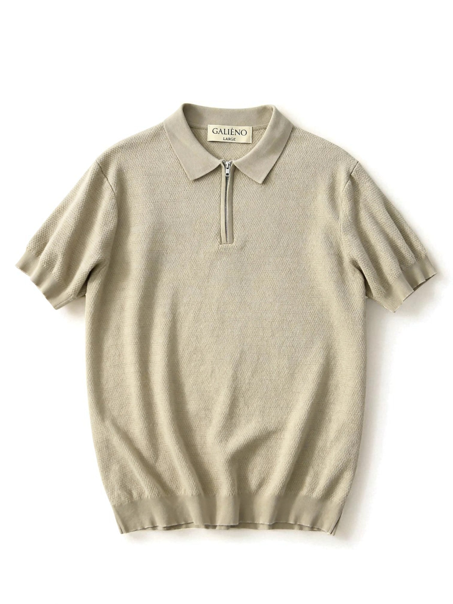 Polo zippé manche courte - Beige