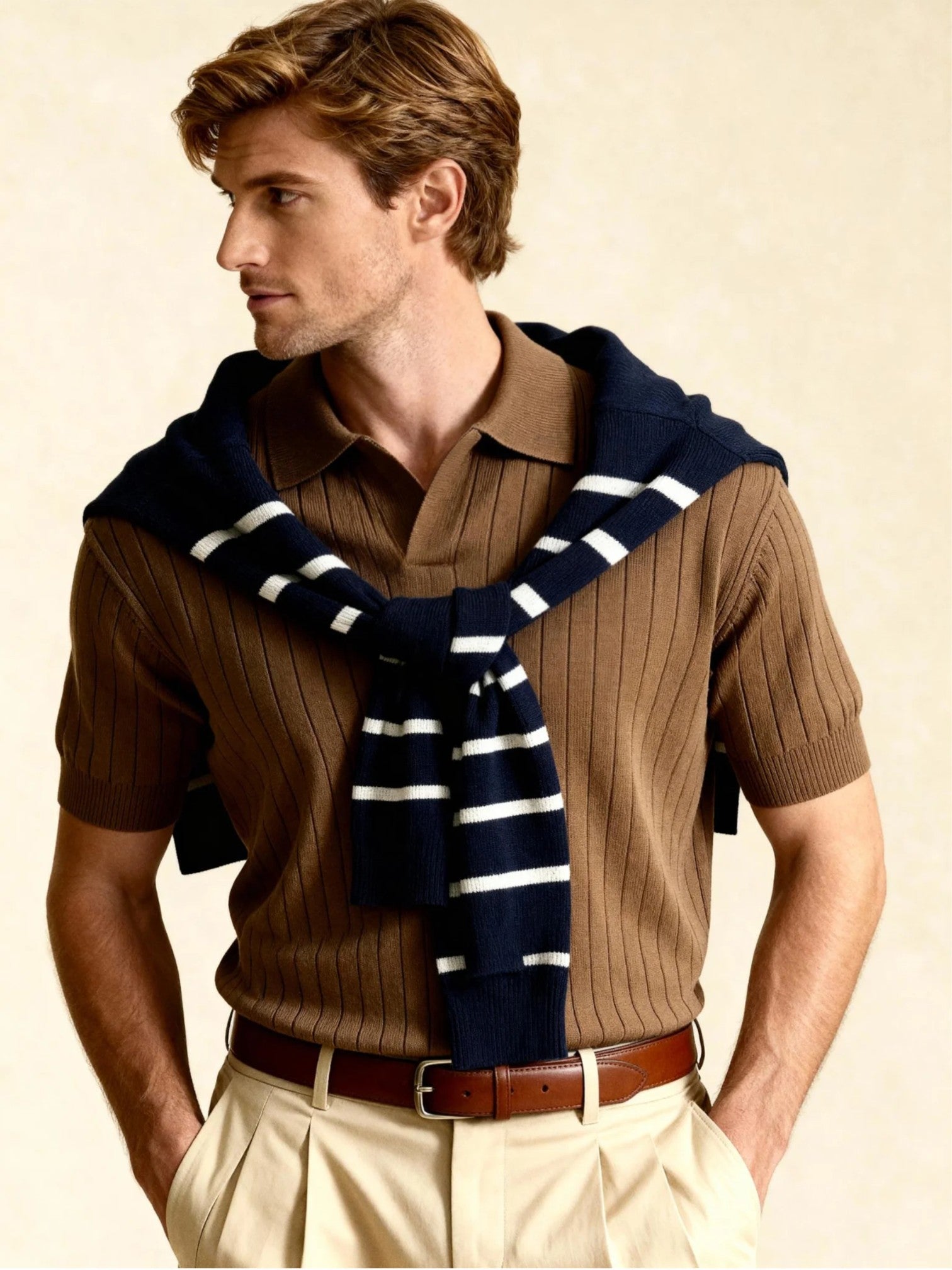 Polo zippé marinière - Beige
